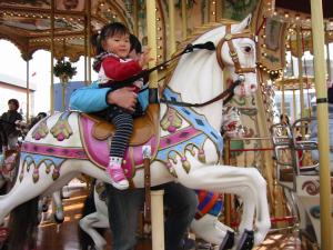 ということで水族館の近くの小さい遊園地でメリーゴーランド