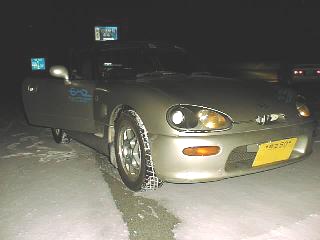 8月25日(火)に上記の場所でショートサーキットの走行会があった。平日ということで15台ぐらいしか集まらなかったのでめいっぱい走れてめちゃ疲れたけど充実してて楽しかったよ(^O^)。身内で参加したのは下の写真に乗ってる4台で、身内では僕が一番いいタイムがだせた(ちっちゃいから有利!)。そんでもって、残りの3台が水溜りにつっこんで見てのとおり(下の写真)ダートでも走ったかのような感じになっちゃった。たぶん帰りは注目の的だっただろう (T_T)。かぷちの写真がいまいち良くないのはデジカメ撮るのがむずかしかったかららしい・・・残念。暑かったけどまたひとつ運転技術の向上になったよO(^o^)o。(1998/08/25)